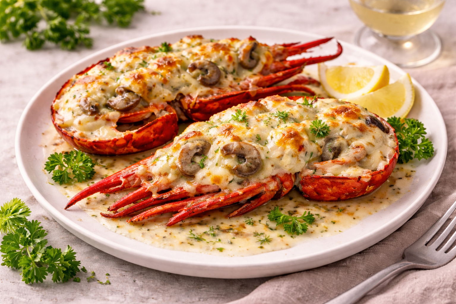 En elegant och festlig rätt där hummerns fina smak lyfts av en krämig sås med champinjoner, cognac och en mild hetta från cayennepeppar. Perfekt till nyår, festliga middagar eller när du vill servera något riktigt exklusivt.