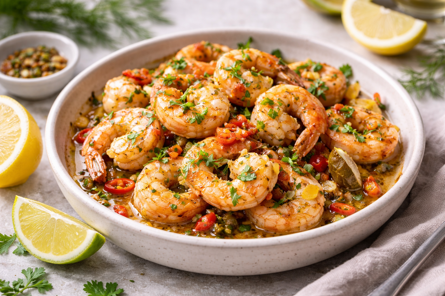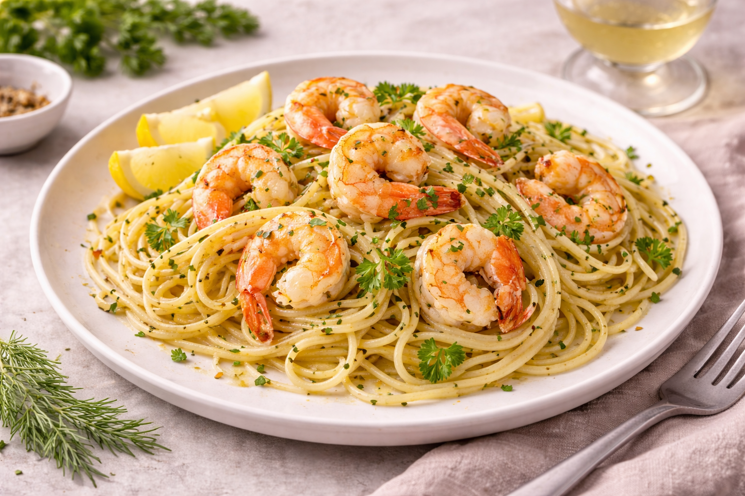 En elegant pastarätt där saftiga scampi möter frisk citron, vitlök och örter. Kombinationen av smör, olivolja och vitt vin skapar en lätt och smakrik sås som omsluter pastan perfekt. En snabb men lyxig rätt som passar både vardag och middag med gäster.